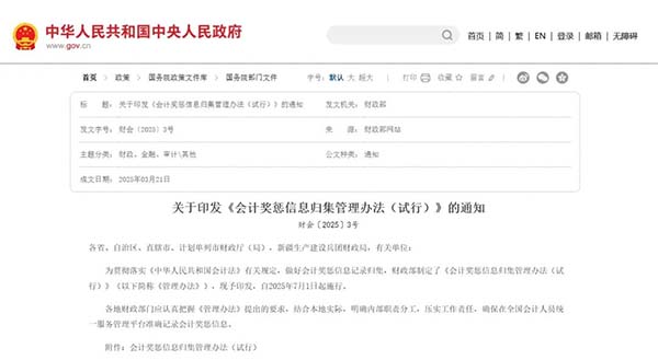 據(jù)石家莊用友軟件了解,日前,財(cái)政部正式印發(fā)《會(huì)計(jì)獎(jiǎng)懲信息歸集管理辦法(試行)》,宣布自2025年7月1日起,全國會(huì)計(jì)人員的表彰獎(jiǎng)勵(lì)和行政處罰信息將被錄入全國會(huì)計(jì)人員統(tǒng)一服務(wù)管理平臺(tái)。