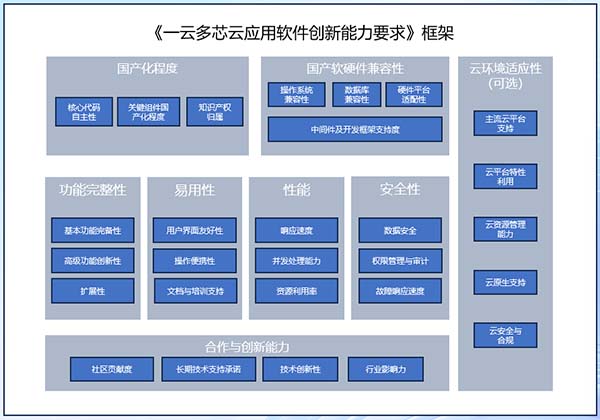 為此推出的“一云多芯云應用軟件創(chuàng)新能力要求”評估體系,以科學量化方式設定了國產(chǎn)云軟件的創(chuàng)新門檻: