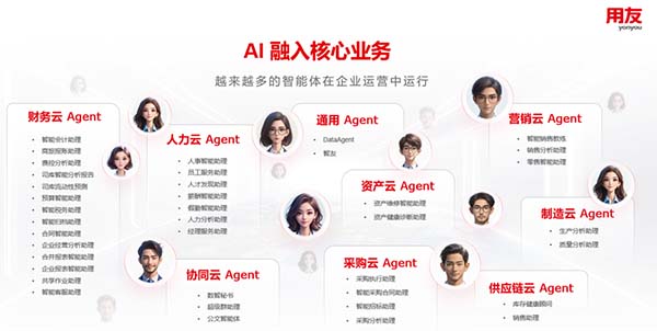 在人力資源領(lǐng)域,用友BIP推出了員工服務(wù)助理、人事智能助理、假勤智能助理、薪酬智能助理、人才發(fā)現(xiàn)助理等通過(guò)AI技術(shù)與人力資源大數(shù)據(jù)的深度融合,幫助HR實(shí)現(xiàn)從“事務(wù)執(zhí)行者”蛻變?yōu)?ldquo;戰(zhàn)略伙伴”及“變革推動(dòng)者”。