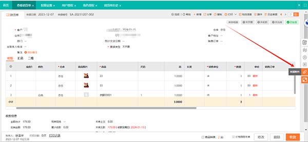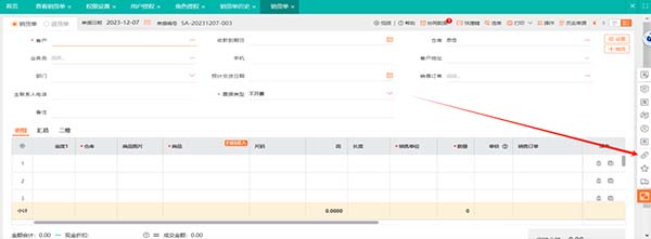1、新增銷貨單時(shí),點(diǎn)擊右側(cè)的回形針【