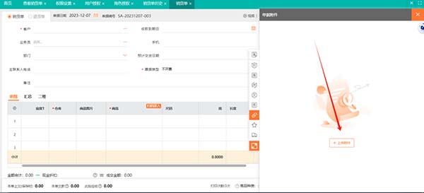單據(jù)保存后也可以進(jìn)行上傳,同樣點(diǎn)擊回形針圖標(biāo)上傳即可。