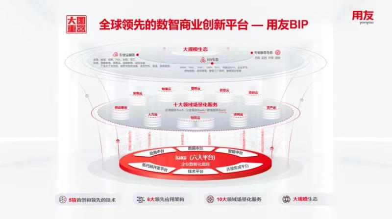 作為企業(yè)數(shù)智化云服務(wù)與軟件龍頭廠商,用友自1988年創(chuàng)立以來(lái),一直專注于信息技術(shù)在企業(yè)與公共組織應(yīng)用與服務(wù)領(lǐng)域,先后發(fā)展成為中國(guó)最大的財(cái)務(wù)軟件提供商、亞太最大全球前10的ERP軟件提供商,并累計(jì)服務(wù)了上萬(wàn)家大型企業(yè)信息化。近年來(lái),用友戰(zhàn)略研發(fā)推出了全新一代服務(wù)企業(yè)數(shù)智化的商業(yè)創(chuàng)新平臺(tái)—用友BIP,已先后服務(wù)了海內(nèi)外不同規(guī)模的眾多行業(yè)領(lǐng)先企業(yè)的數(shù)智商業(yè)創(chuàng)新,被重要央媒譽(yù)為企業(yè)數(shù)智化的“大國(guó)重器”。