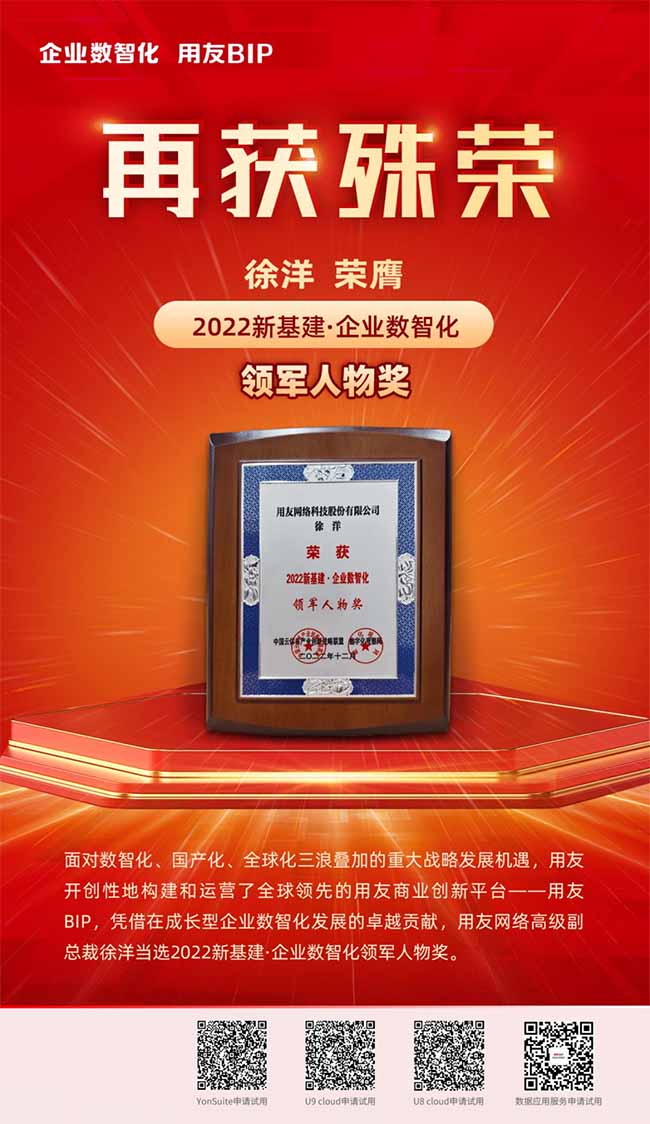 今年1月,國務院印發(fā)的《“十四五”數(shù)字經(jīng)濟發(fā)展規(guī)劃》明確提出,到2025年,數(shù)字經(jīng)濟核心產業(yè)增加值占國內生產總值比重達到10%;展望2035年,力爭形成統(tǒng)一公平、競爭有序、成熟完備的數(shù)字經(jīng)濟現(xiàn)代市場體系,數(shù)字經(jīng)濟發(fā)展水平位居世界前列。依托國家政策紅利,面對數(shù)智化、國產化、全球化三浪疊加的重大戰(zhàn)略發(fā)展機遇,用友開創(chuàng)性地構建和運營了全球領先的用友商業(yè)創(chuàng)新平臺——用友BIP,憑借在成長型企業(yè)數(shù)智化發(fā)展的卓越貢獻,用友網(wǎng)絡高級副總裁徐洋當選2022新基建·企業(yè)數(shù)智化領軍人物獎。